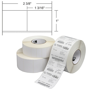 ZEBRA CONSUMABLES ZSelect 4000D REMOVABLE PAPER LABEL DIRECT THERMAL. PAPER LABLES 2.375 Inch X 1 Inch 1" CORE 5" OD. CENTER VERTICAL SLIT CREATING TWO 1.1875 X 1" LABLES